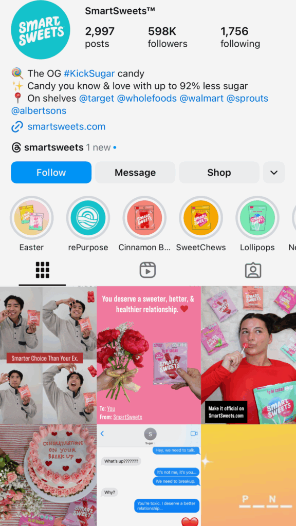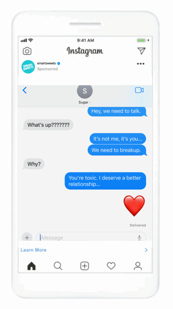 SmartSweets has up to 92% less sugar per 50g than traditional candy equivalents, allowing you to move on from your ex and upgrade too.